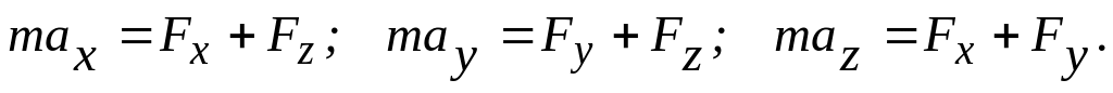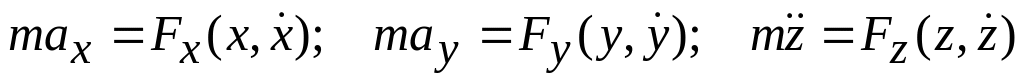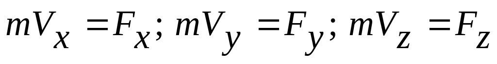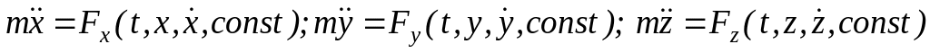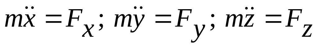 2.1.7 Вкажіть повні правильні вирази диференціальних рівнянь руху матеріальної точки в декартових координатах.