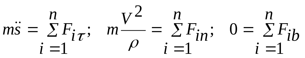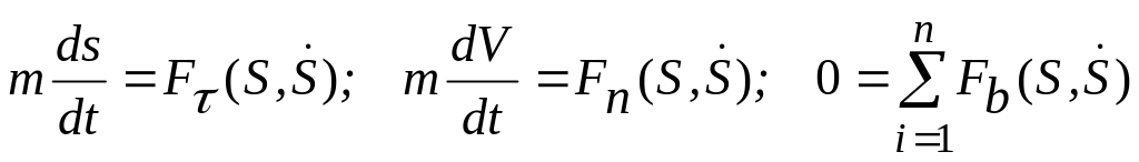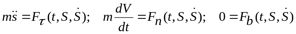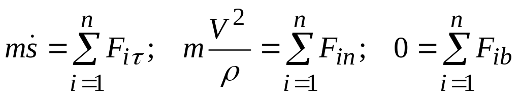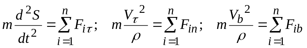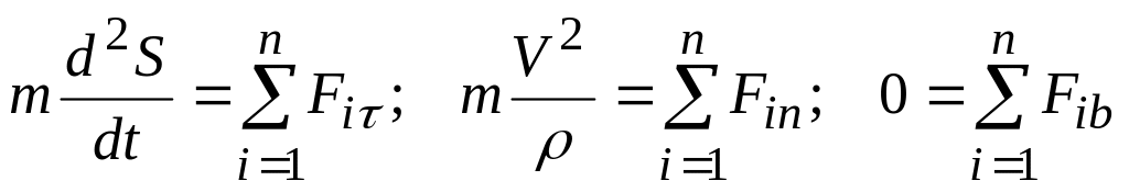 2.1.8 Вкажіть повні правильні вирази диференціальних рівнянь руху матеріальної точки в натуральних координатах.