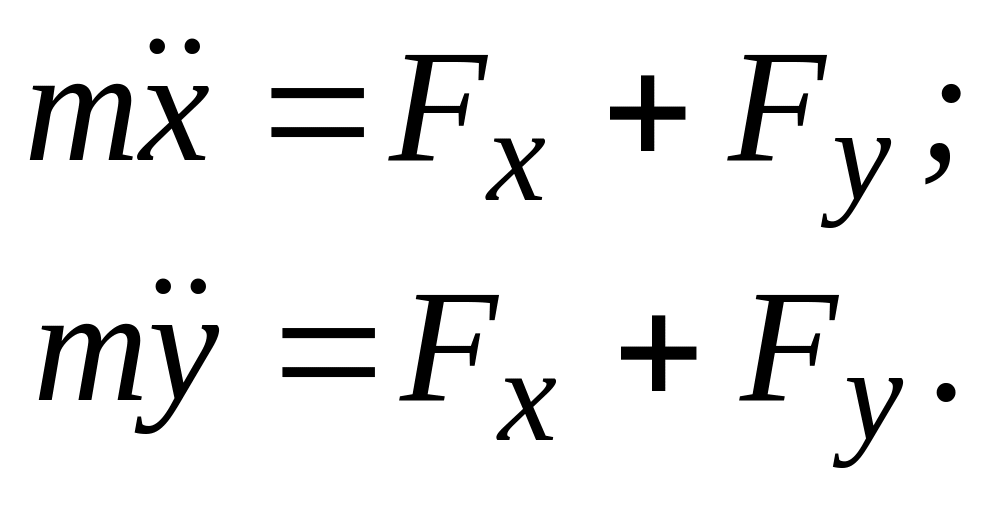 2.1.13 Вкажіть повні правильні вирази диференціальних рівнянь руху матеріальної точки вздовж осей Ох і Оу під дією сили .