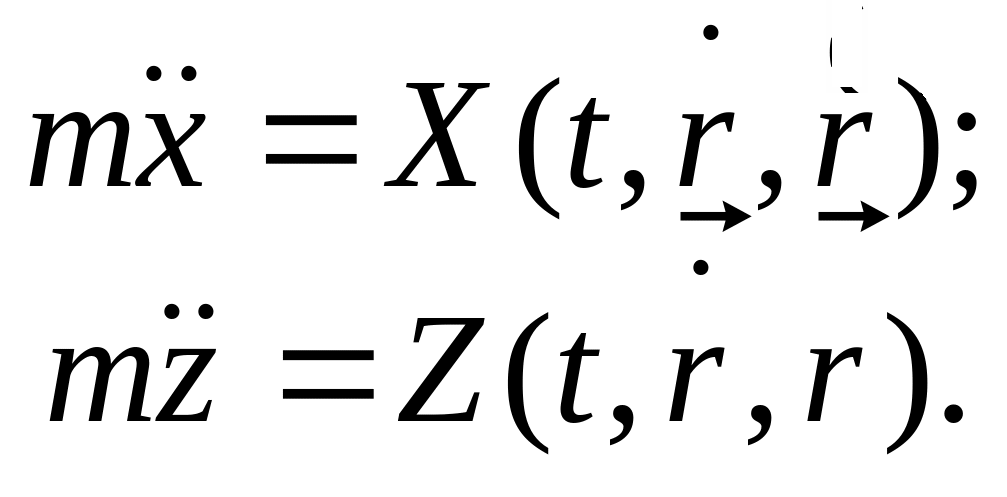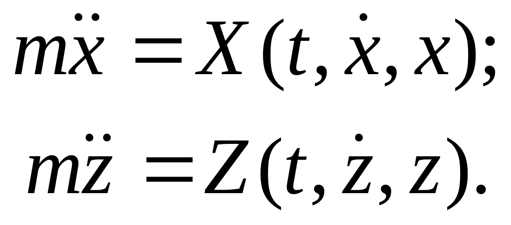 2.1.14 Вкажіть повні правильні вирази диференціальних рівнянь руху матеріальної точки вздовж осей Ох і Оz під дією сили .