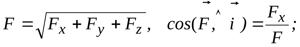 2.2.3 Вкажіть правильні вирази, за якими знаходять модуль рівнодійної і визначають її напрям.