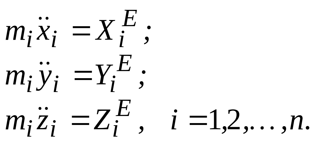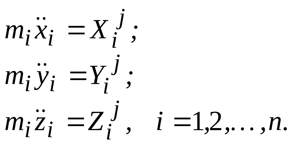 2.5.2 Вкажіть правильні вирази диференціальних рівнянь руху механічної системи в проекціях на декартові осі координат.
