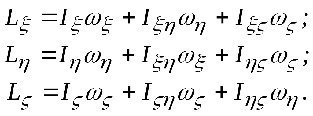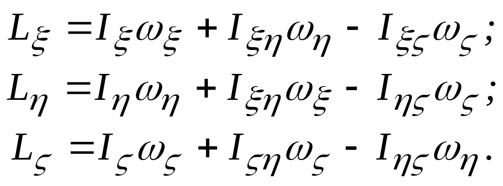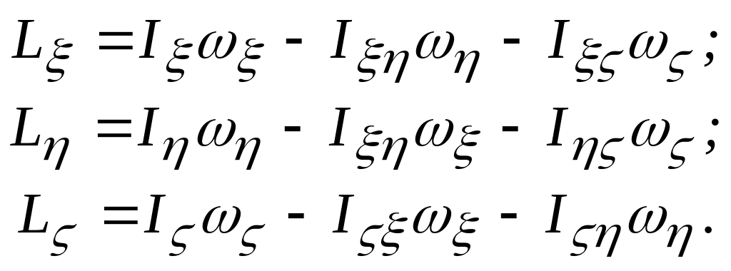 2.8.1 Вкажіть правильні вирази, які визначають кінетичні моменти твердого тіла, що обертається навколо нерухомої точки, відносно координатних осей, які є не головними осями інерцій.