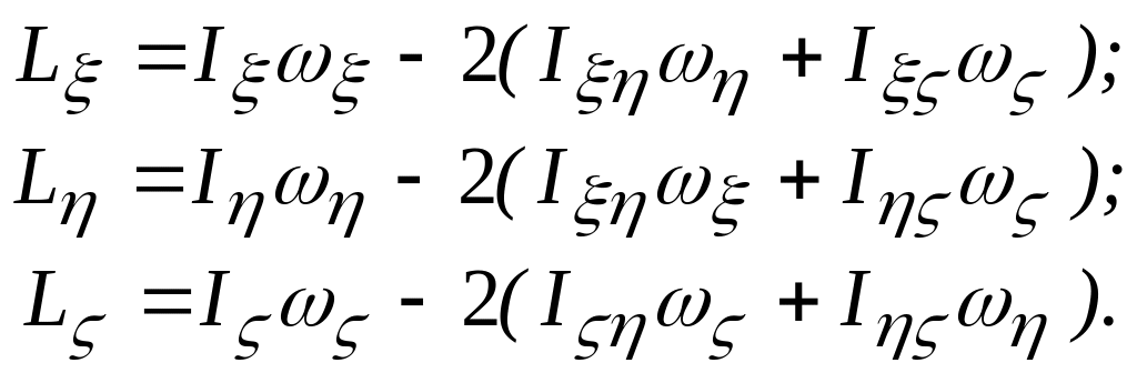 2.8.3 Вкажіть правильні вирази, які визначають кінетичні моменти твердого тіла, що обертається навколо нерухомої точки, відносно координатних осей, які є головними осями інерцій.