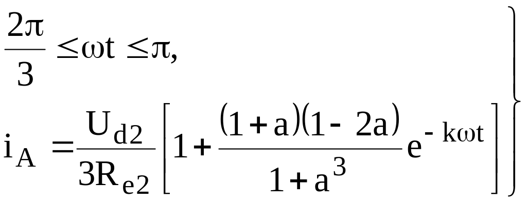 Протягом одного напівперіоду три рази змінюються схеми підключення фаз. Миттєве значення струму однієї фази протягом напівперіоду складається з трьох відрізків експоненціальних функцій. Рекомендується виконувати розрахунок струму на прикладі фази А: