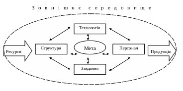 Рис. 7.4. Склад і взаємозв'язок основних елементів організації