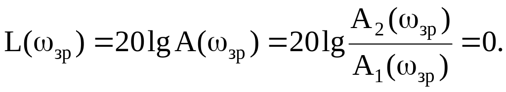 Частота, при якій ЛАЧХ перетинає вісь частот (L=0 дБ), називається частотою зрізу зр. Для цієї частоти маємо: