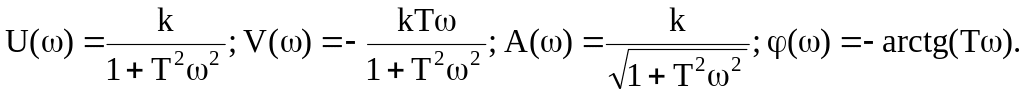 тобто ЛАЧХ являє собою пряму, що проходить через точку з координатами (=1с-1; L()=20lg k) та має ухил -20дБ/дек (мінус двадцять децибел на декаду). Вона перетинає вісь частот при = k (рис. 5.13 г).