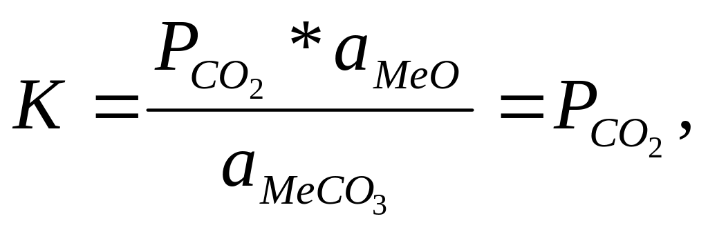 Равновесное состояние подобной системы определяется давлением СО2 , которое зависит только от температуры. Поэтому в состоянии равновесия каждой температуре должно соответствовать определенное давление двуокиси углерода, то есть