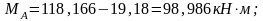 MA= kA∙M= 0,353∙532,7= 188,043 кН∙м;