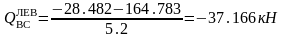 QA= (-MA+MB) / H + qвH / 2= (1030,823 +313,11) / 16,6 + 5,24∙16,6 / 2=124,452
