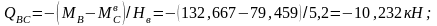 MB= kBqв∙H2= (-0,056) 5,24∙16,62= - 80,86