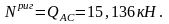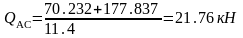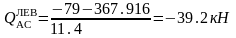 QB= QA- qвH= 124,452 – 5,24∙ 16,6= 37,468