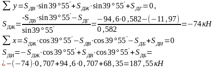 Усилия неизвестныв стержнях ДЖ и ДИ .