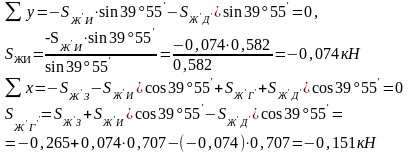Нпр. = -3,77 – 28,68 – 1,97 + 14,25 – 22,05 · 0,9 = -40кН.