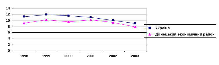 Таке співвідношення зберігається впродовж останніх років. Дані рисунку 2.2 демонструють динаміку рівня безробіття в Донецькому районі та Україні.