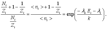 Напомним, что при выводе статистических распределений отыскивается наиболее вероятное распределение частиц, т.е. распределение, которое может быть реализовано наибольшим числом способов. Согласно основному постулату статистической физики именно это распределение является равновесным. Будем считать, что частицы не взаимодействуют друг с другом ( модель идеального газа), а также полагать, что все распределения, которые приводят к одной и той же суммарной энергии частиц, реализуются с одинаковой вероятностью.
