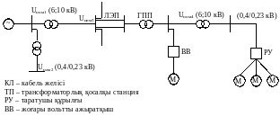 Берілген схемаға талдау жасасақ төмендегілерді байкауға болады. Электр энергиясы қуаты жоғары су электр станциясынан кернеуді жоғарылатқыш қосалқы станция, кернеуі 220 кВ, ал ұзындығы 300 км дейінгі желі және төмендеткіш қосалқы станция арқылы кернеуі 110 кВ аудандық желіге беріледі.