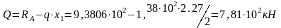 Касательные напряжения в стенке определяются поперечной силой в ригеле Q