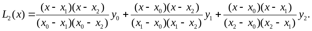 Якщо є відомості про три крапки (x0;y0), (x1,y1) і (x2,y2) функції, то можна побудувати інтерполяційний багаточлен Лагранжа другого ступеня, інакше називаний формулою квадратичної інтерполяції: