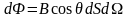 Поток излучения Ф в телесном угле , падающий на приёмник, равен: