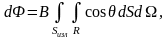 где интегрирование производится по площади и по всем углам в направлении приемника.