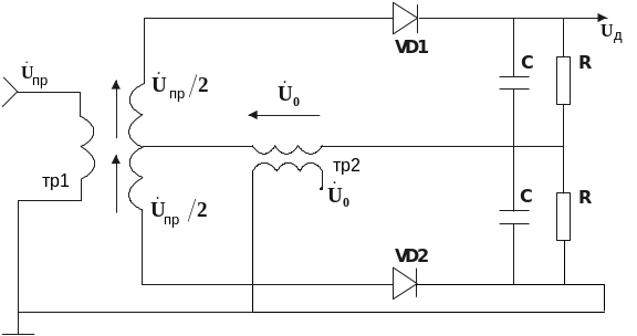 полуобмотки на диоде VD2. Выпрямленные