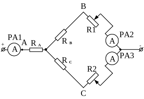 RAB, RBC, RAC - магазины сопротивлений (величины
