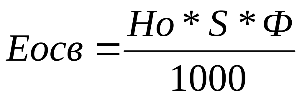 Якщо відома загальна площа цеху S, м2 , норма витрат енергії на освітлення Но (Вт/м2 за годину) та час освітлення Ф, то визначення проводимо за наступною формулою: