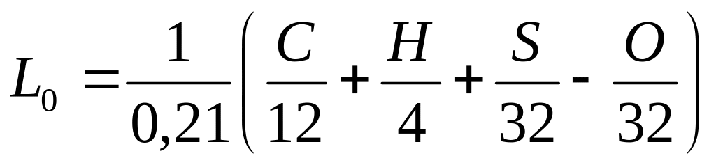 Задаваясь, значением коэффициента избытка воздуха, определяем действительное количество воздуха в молях, необходимое для сгорания 1 кг топлива заданного состава.