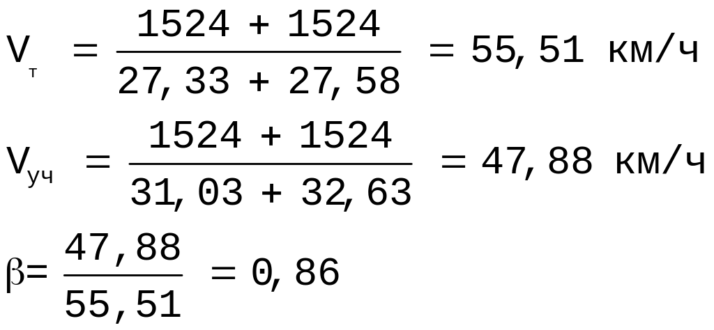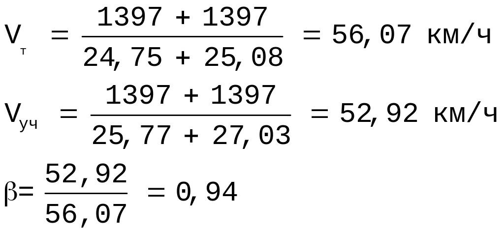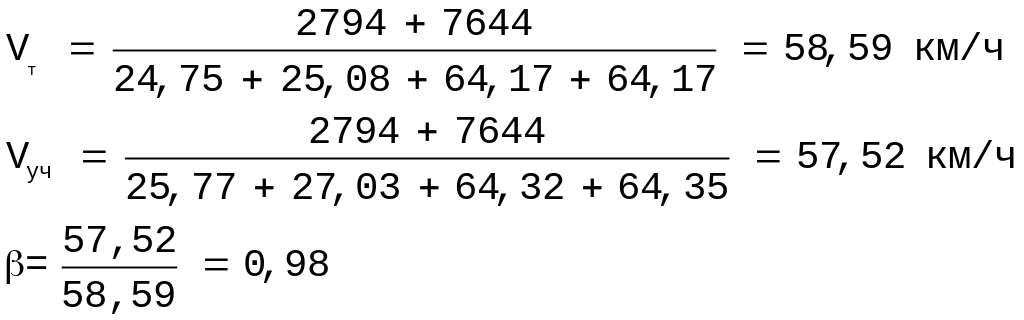 Показатели графика движения поездов определяются на основе ведомостей, составленных в отдельности для участков Б-В и В-Г. На основе составленных ведомостей определяются для каждого участка в отдельности и в целом для отделения следующие качественные показатели графика движения: