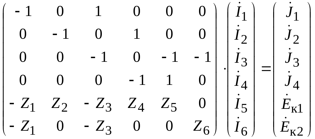 Используя матрицу , второй закон Кирхгофа можно записать в следующей матричной форме:
