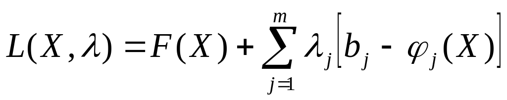 Считая, что L(X, ) непрерывна вместе со своими частными производными, далее решение, как в методе дифференциального исчисления: составляется система n+m уравнений из частных производных по Х и л, они приравниваются 0, решается система.