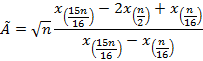 result = (n**0.5) * (x3 - 2*x2 + x1) / (x3 - x1)