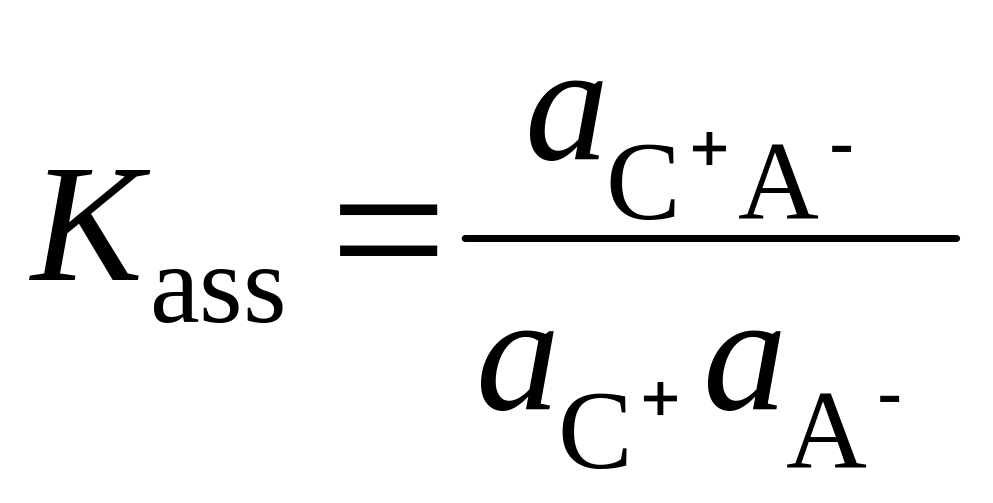 До сих пор мы не делали различия между ассоциатами двух типов, (C+A–)solv и (C+solv A–solv), хотя в общей схеме диссоциации электролитов, предложенной Измайловым, предусмотрены были оба типа ассоциатов.