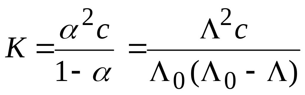 В то же время, кондуктометрический метод, основанный на измерении электропроводимости, дает «общую» (over-all) константу, по Измайлову – «обычную» константу равновесия: