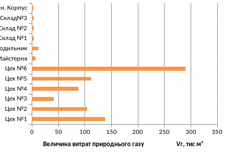 З балансу використання природнього газу видно, що найбільше його споживається в головному виробничому корпусі та в цеху сухого молока(1, 2).