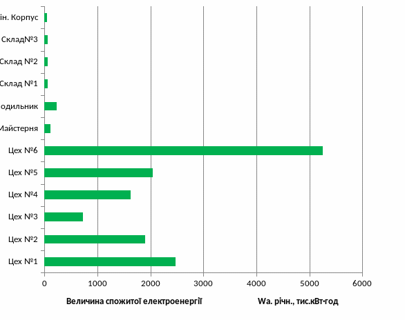 З рис. 2.2, що є балансом електроенергії на підприємстві випливає, що найпотужнішими цехами є 1-й, 2-й та 6-й, які варто більш детально дослідити на предмет винайдення можливостей енергозбереження.