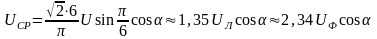 Әрбір тиристордың өткізгіштік интервалы 120° болғандықтан, әрбір уақытта екі тиристор ашық болып табылады және якордағы кернеу трансформатордың екіншіретті екі орамдарындағы фазалық кернеулердің айрымы арқылы анықталады, яғни сызықты кернеу арқылы. Жүктемедегі кернеудің орташа мәні (5.9) теңдікке сәйкес: