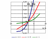 Рисунок 2 – Влияние отклонения напряжения на потребление реактивной мощности (m-коэф. загрузки)