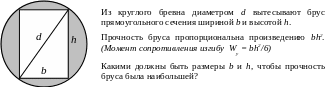 Очевидно, что h2 = d2 – b2. Прочность бруса можно выразить как P = kb(d2 – b2), где k – коэффициент пропорциональности.
