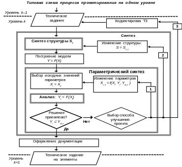 Процесс проектирования на каждом уровне детализации системы и в рамках каждого аспекта организуется по схеме, показанной на рисунке ниже.