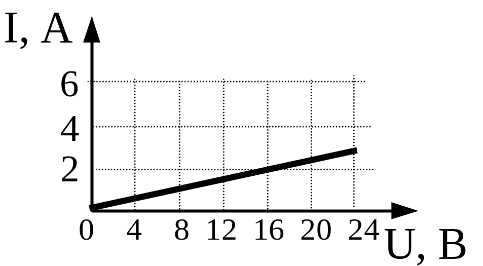 35. На рисунке изображен график зависимости силы тока в проводнике от напряжения на его концах. Чему равно сопротивление проводника?