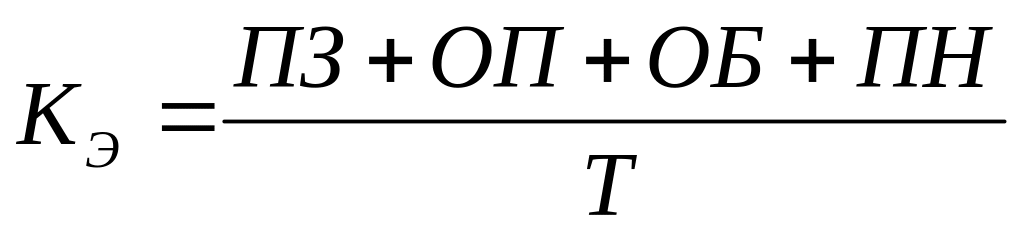 Степень экстенсивного использования рабочего времени оценивается величиной коэффициента экстенсивности Кэ, рассчитываемого по формуле:
