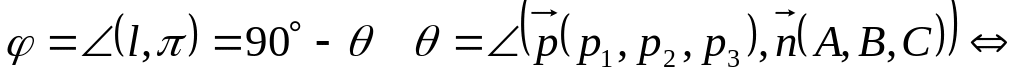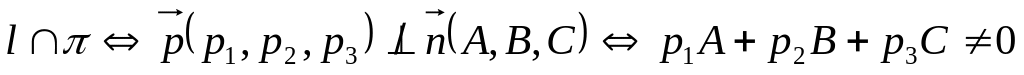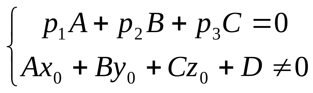 3. Пряма належить площині. Це можливо тоді, коли вектори , є перпендикулярними, тобто скалярний добуток векторів дорівнює нулю. Та всі точки прямої належать площині, тобто точка задовольняє рівняння площини.