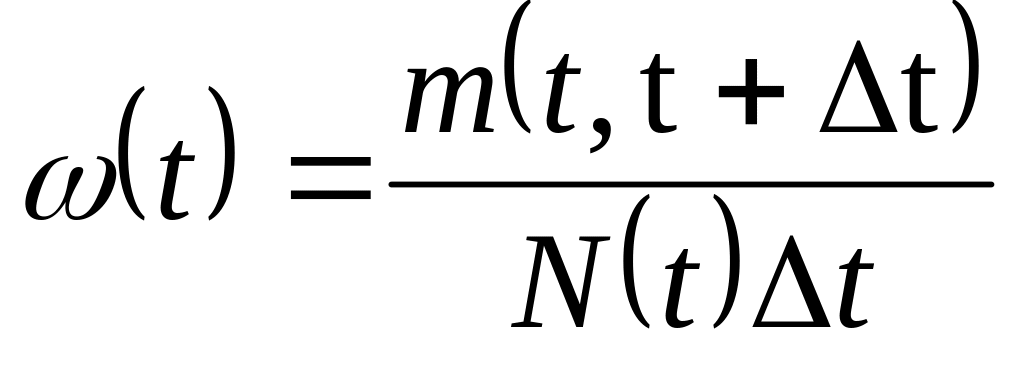 где m (t, t+∆t) - число отказов в интервале времени (t, t+∆t); N(t) -количество восстанавливаемых изделий, находящихся в работоспособном состоянии в момент времени t.