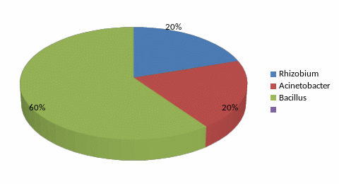Изучение таксономического состава микрофлоры контрольных образцов почвы показало, что среди бактерий-деструкторов преобладали грамположительные спорообразующие бактерии рода Bacillus, составляющие около 60% идентифицированных видов. Кроме того, были выделены грамотрицательные бактерии Acinetobacter (20%) и Rhizobium (20%) (рисунок 9).