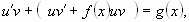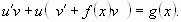 3. Подставить y и y' в данное уравнение: u'v + uv' = f(x)uv + g(x) или u'v + uv' + f(x)uv = g(x).