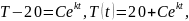 2. Скорость остывания воды в чайнике пропорциональна разности температуры чайника и кухни. Чайник выключился в 10.20 при температуре воды 100С°. В 10.30 температура воды в чайнике была 80 С°. Найти время, за которое температура воды в чайнике будет равна 40 С°, если температура на кухне 20 С.