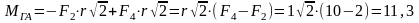 Главный момент системы сил относительно точки равен сумме моментов сил относительно этой точки. Запишем уравнение моментов сил относительно точки А.